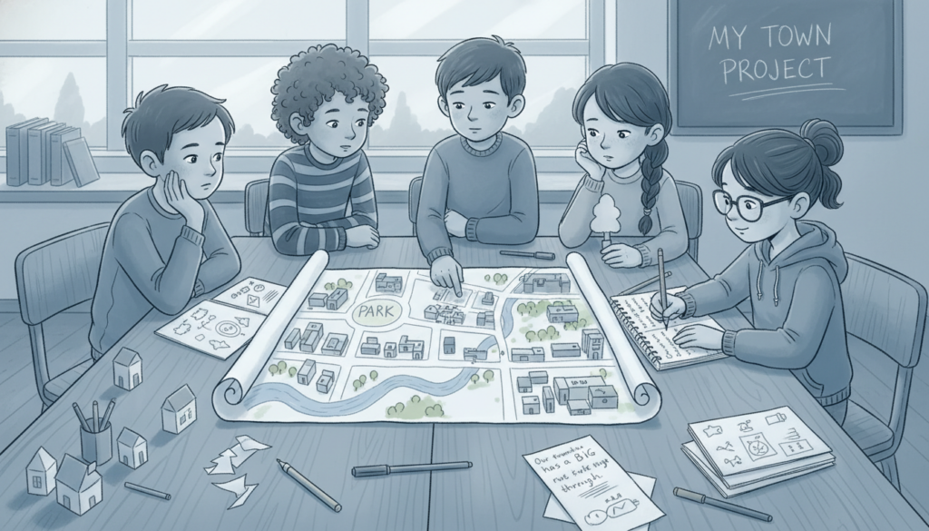 특정 주제를 정해 아이들이 직접 탐구하고 결과물을 영어로 발표하는 방식입니다. 예를 들어, ‘우리 동네 소개하기’ 프로젝트를 진행한다면…